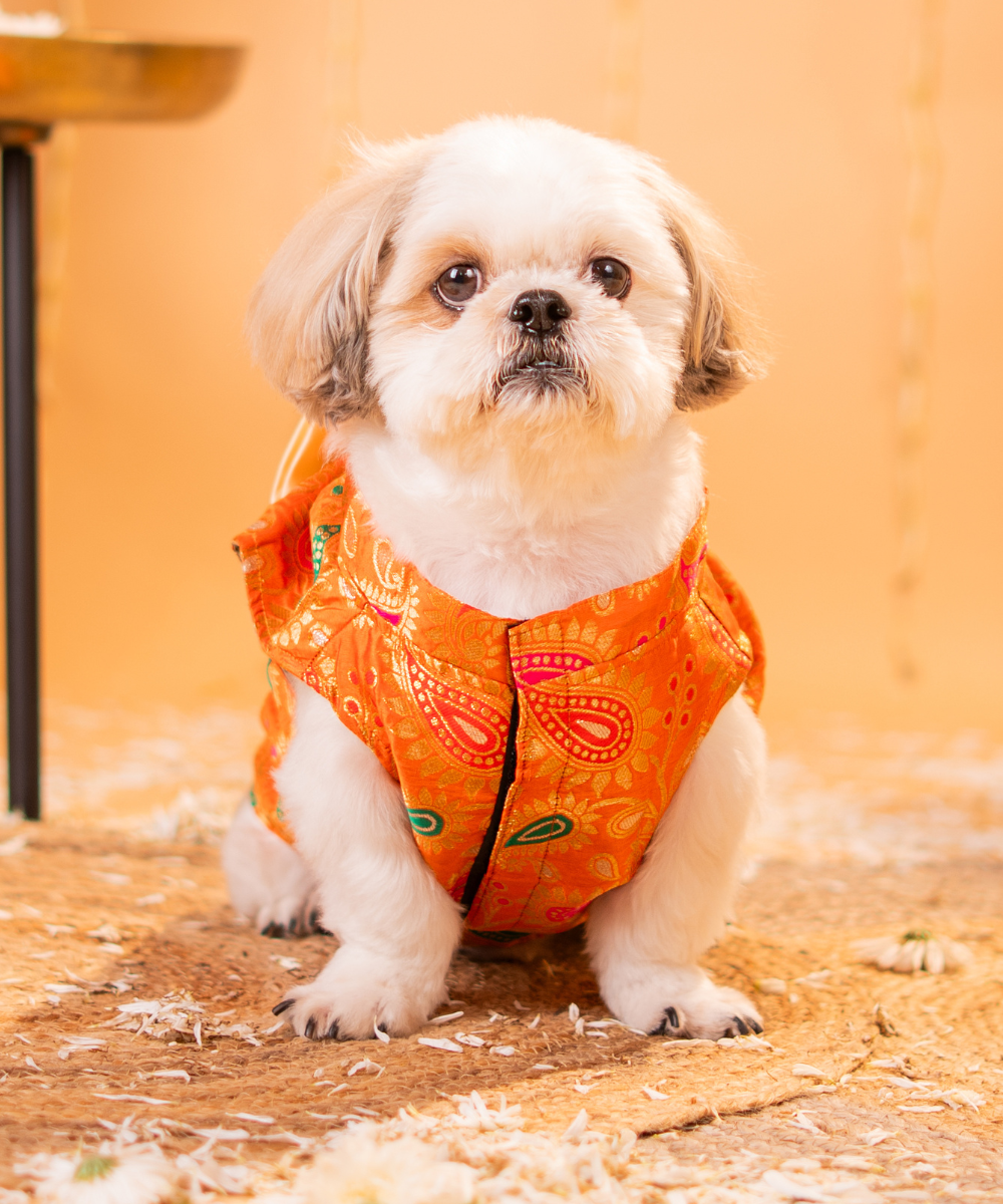 Pack of 2 amazing Dog Kurtas at a steal price. Handcrafted with love and attention to detail, Our Kurtas blends traditional charm with modern comfort for your pup. These outfits are perfect for special occasions or festivals. Made from premium brocade fabric with an inner lining for the dog’s comfort. The bowtie and pockets complete the festive look.